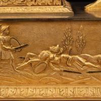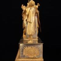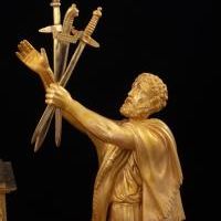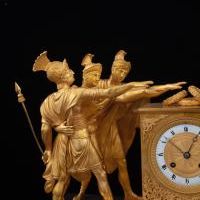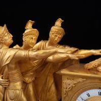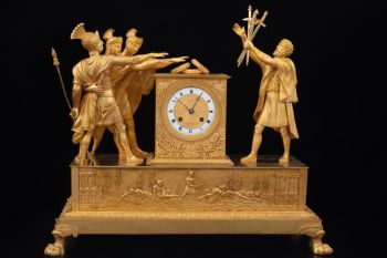 Eccezionale pendola raffigurante "Il giuramento degli Orazi", in bronzo finemente cesellato e dorato al mercurio. Francia. Epoca : Impero . HxLxP : 50x55x21 cm.