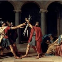 Gli Orazi erano tre fratelli campioni di Roma e i Curiazi erano i loro tre rivali, fratelli albani, protagonisti della leggenda di un duello per decidere la supremazia tra Roma e Albalonga. Lo scontro, che vide un solo Orazio sopravvivere grazie a un astuto stratagemma, si concluse con la vittoria di Roma e la sottomissione di Albalonga. La leggenda è ambientata durante il regno di Tullo Ostilio e si conclude con l'uccisione della sorella dell'Orazio vittorioso, Camilla Orazia, che aveva rimproverato il fratello per le uccisioni.