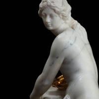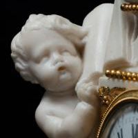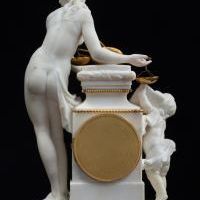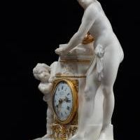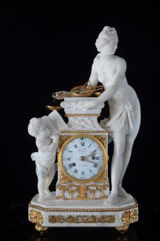 Rarissima pendola in marmo bianco e bronzi finemente cesellati e dorati al mercurio raffigurante "l'Equità" . Quadrante firmato Viger a Parigi. La scultura in marmo probabilmente é dello scultore francese Ètienne Maurice Falconet. Francia. Epoca :LXVI. HxLxP : 40x21x14 cm.